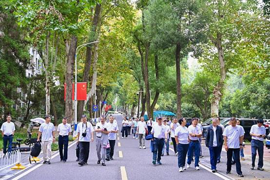 学术交流服务中心完成报到,并领取纪念T恤、专属印章、胸牌及班旗等活动物资。随后,校友们重游校园,一起爬上喻家山,登高往远处,重温往昔求学岁月。