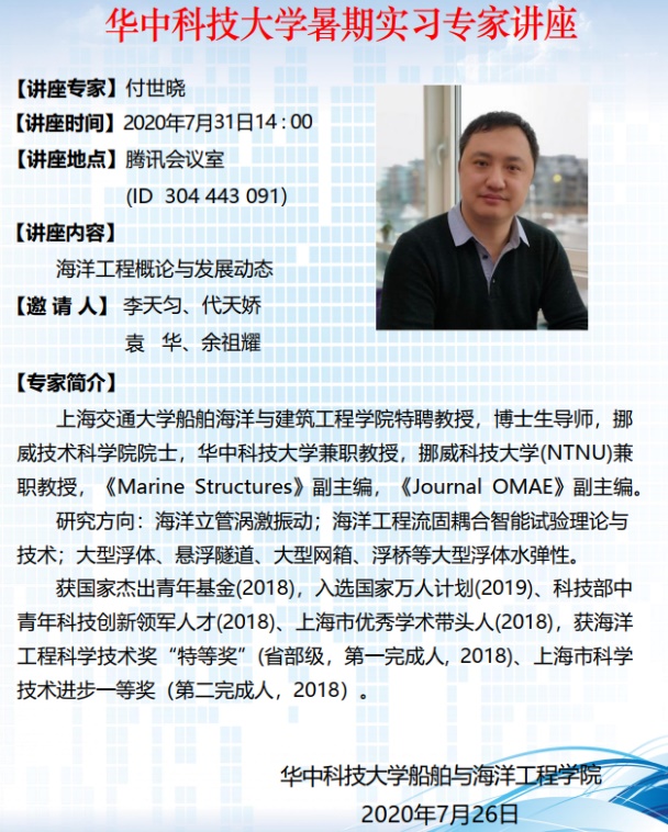 4)结合暑期实习实践课程,邀请九位船舶与海洋工程领域有影响力的高校教授、研究所专家、企业专家围绕科技革命、产业变革热点开展系列线上讲座。挖掘中国船海人打造大国重器的创新意识、民族自信、文化自信、爱国情怀等思政元素,强化学生工程伦理教育,培养学生精益求精的大国工匠精神,激发学生科技报国的家国情怀和使命担当。发挥实践课程的育人作用。