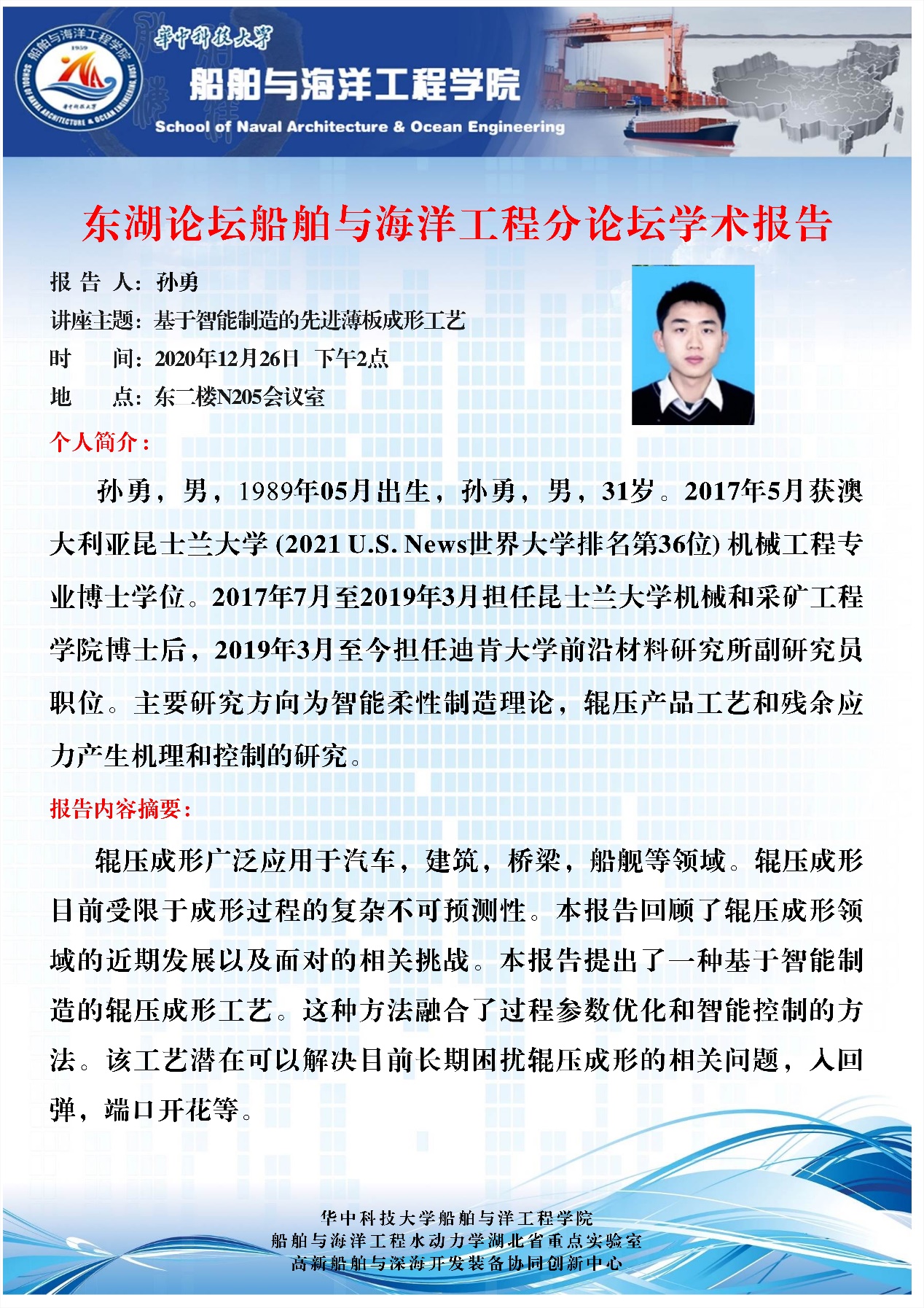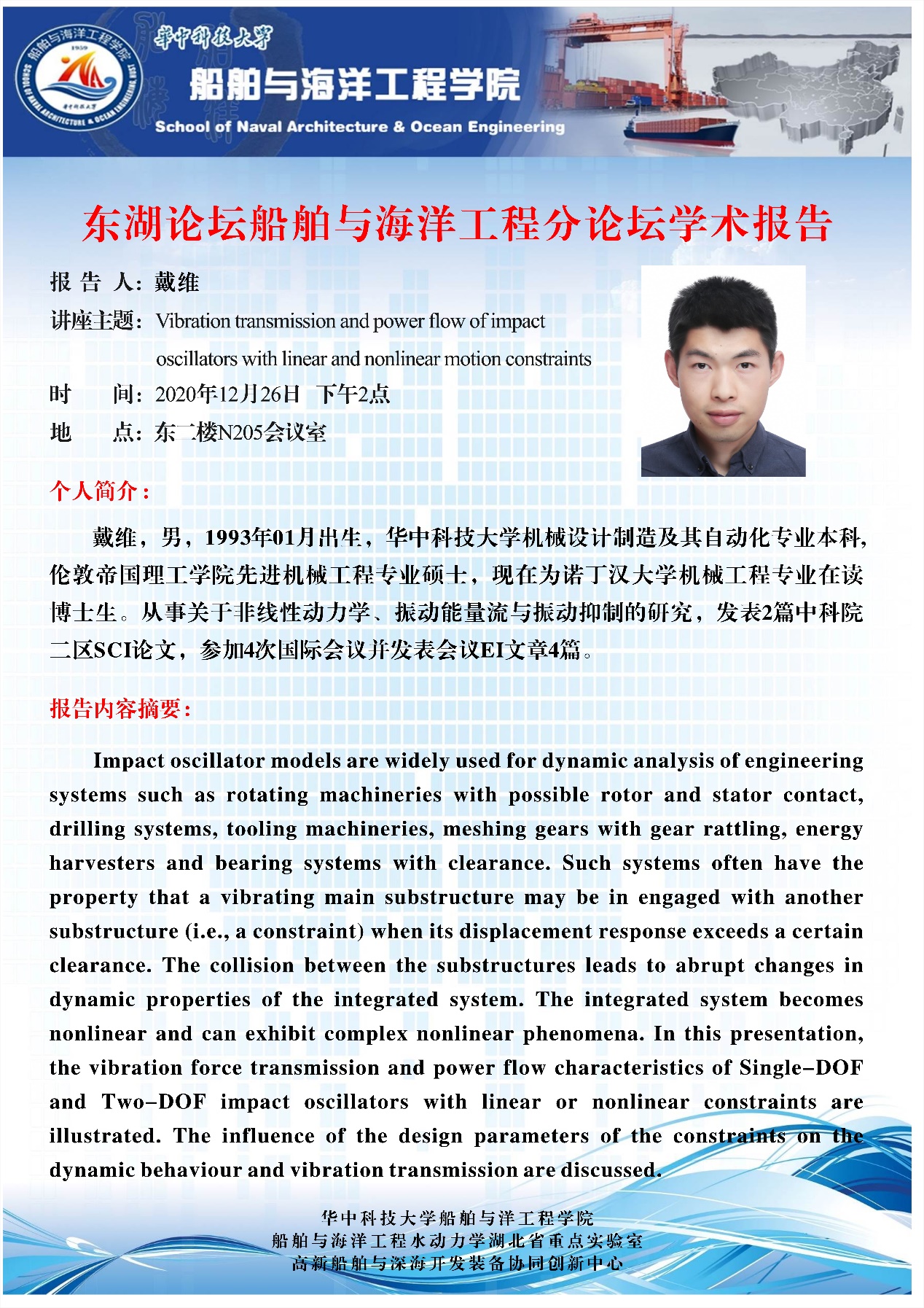 师生开展深入的学术交流与合作,更希望各位优秀青年学者能够加入学院共促船舶与海洋工程学科发展。