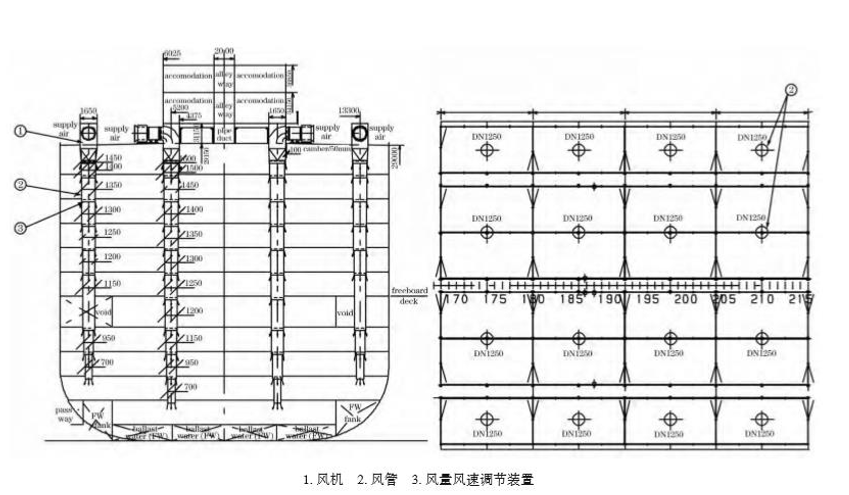 该作品结合已有牲畜船通风系统设计方案和AMSA设计规范,提出大型牲畜船通风系统设计方案。对大型牲畜船通风系统进行适当简化,采用CATIA软件建立三维模型并根据具体的工况采用STAR-CCM+软件对该模型进行数值模拟,并采用有限体积法,将待解的微分方程对每个控制体积积分并得到关于各节点上各因变量的离散方程。经处理后给出舱室内典型截面的速度场、温度场等物理参数分布,分别针对不同位置给出相应的参数分布图,以此来分析牲畜舱室围栏区域的最低换气次数和最低风速是否达到标准,并对不满足规范要求的通风系统局部进行优化。
