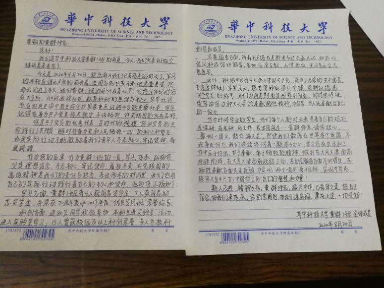 黄群班全体同学对英雄校友黄群的承诺。今年的8月20日,正是黄群师兄英勇牺牲的两周年纪念日。