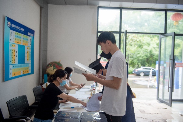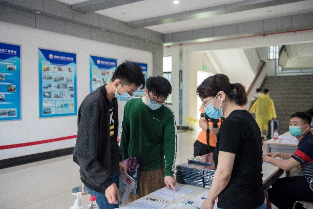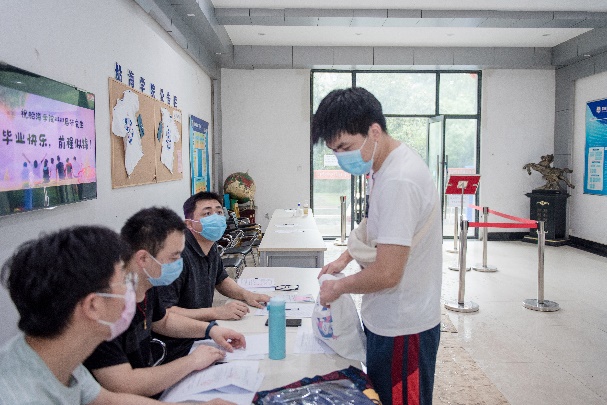 倾盆而下的暴雨给这场特殊的毕业季增添了又一新的印记。2020届研究生同学们无视风雨、满怀期待地踏入了学院楼,像久违的游子回归故里。学院工作人员们逐一为大家发放毕业礼包、健康包以及毕业证和学位证等,同时办理组织关系转接等事宜。