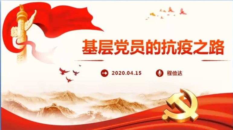 船海本科19级党支部程俭达分享了他身边党员的故事:有年轻的护士日夜兼程赶回医院参加工作,有正在读书的大学生自愿担任小区志愿者买米买油送菜送面。程俭达讲述了其父亲作为一名普通基层党员干部,在防疫期间挨家挨户上门走访,宣传防疫知识,服务居民需要的感人事迹。程俭达在总结中说到:“此次抗疫过程中,无数共产党员把初心落在行动上、把使命担在肩膀上,践行着随时准备为党和人民牺牲一切的宗旨。”