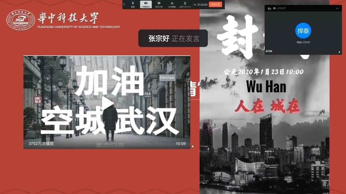 船海本科16级党支部张宗好以个人视角回顾了自武汉封城以来网络舆情的发展脉络,说道“我们回顾历史,是为了更好记住历史”。张宗好分析了作为学生党员要如何理智看待舆情,合理引导舆情。以方方日记为例,张宗好说:“方方日记不可怕,可怕的是她背后别有用心的外国政客”。最后,张宗好用自己和身边人的经历,告诉大家要相信中国,相信中国共产党,他讲到:“当你在舆论场中找不到方向,请和党中央保持高度一致,不管任何时候,相信我们的国家,我们党有能力应对任何危机和挑战。”