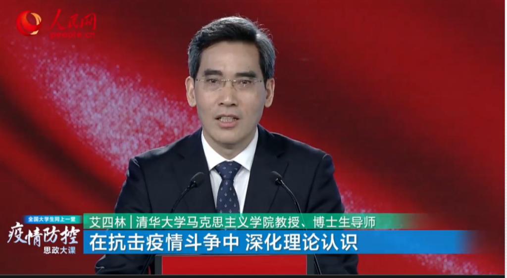 清华大学马克思主义学院教授艾四林,立足中国抗击疫情的具体实践,引导学生深化对马克思主义基本理论的认识、深化对马克思主义中国化最新成果的认识。艾教授深刻透彻地讲解了“中国共产党为什么能,中国的制度优势是如何体现的”。他讲到,疫情发生后,中国举全国之力,采取最严格彻底的防控举措,付出了巨大的努力和代价,这充分彰显了负责任的大国担当。