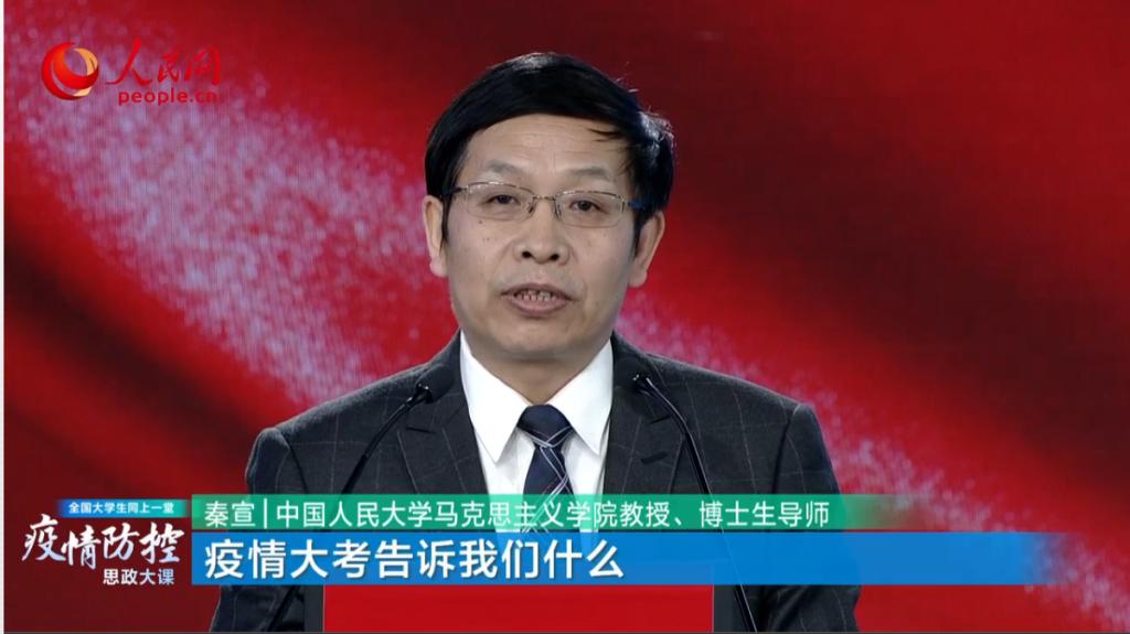 中国人民大学马克思主义学院教授秦宣聚焦“疫情大考告诉我们什么?”,分析中国抗疫彰显的中国共产党领导和中国特色社会主义制度的显著优势。他说,面向未来,我们必须通过推进国家体系和治理能力现代化,提高风险化解能力。