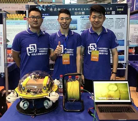 “海洋机器人创新团队”研究生苏翔、张少泽、程尉、雒宗同、王观道的参赛作品“面向海洋牧场的水下机器人”,在竞争激烈的比赛中脱颖而出获得二等奖。