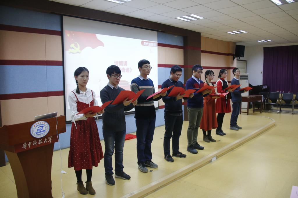 各个学生党支部也围绕 “庆祝改革开放40周年,同心共筑海洋强国梦”这一主题,依次进行了风采展示,展示节目依次为:诗朗诵《我们的旗帜》、合唱《春天的故事》、诗朗诵《改革开放40年 同心共筑中国梦》、三句半《改革开放那些事儿》、舞台剧《远去的牧歌》、诗朗诵《 穿越沧桑 40 年,青春献礼新征程》、小品《大学宿舍》、视频《海洋强国的铸造》、视频《船舶行业的中国制造发展史》、舞台剧《朝着最后的300米冲刺》、合唱《走进新时代》。