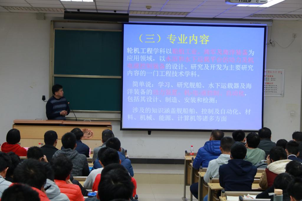 于11月18日晚在东九B102教室开展了轮机系专业教育讲座。此次讲座由学院副院长李维嘉教授、轮机系主任徐国华教授,刘炎副研究员,程一伟博士四位嘉宾主讲。
