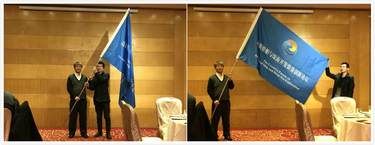 院长解德教授将创新论坛的会旗移交给了天津大学代表。第三届“高新船舶与深海开发装备创新论坛”将于2019年在天津大学举行。(通讯员:李伟伟)