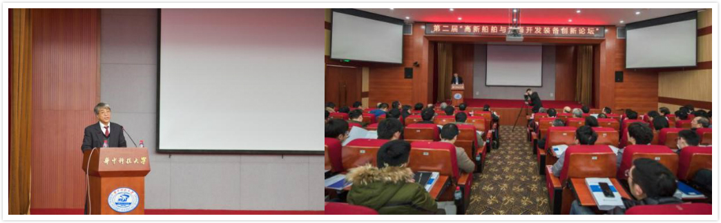 院长解德教授主持。校先进技术与装备研究院副院长、科学技术发展院副院长何保华和湖北省GF工办船舶处处长胡琼分别致辞,“高新船舶与深海开发装备协同创新中心”常务副主任、上海交通大学船舶海洋与建筑工程学院院长杨建民教授和上海交通大学先进技术与装备研究院常务副院长万德成教授分别讲话。何保华介绍了我校的基本情况,在“双一流”建设中,我校将船舶与海洋工程学科定位为战略性学科,表示将秉承“当好东道主、热情迎嘉宾”的理念做好服务保障工作,确保论坛各项议程顺利举行。胡琼强调中共湖北省委和湖北省人民政府高度重视船舶与海洋工程行业发展,湖北约有9000多名船舶与海洋工程领域相关科研人员,同时具有非常完备的人才体系,既有院士、设计大师,也有船舶领域和高校的科研人才,全国每年约有2000名高校毕业生进入船舶研究领域,湖北培养的人才约占三分之一。杨建民提到协同创新中心肩负着建设海洋强国的重要使命,中心内的五所高校在船舶与海洋工程学科中具有传统的优势和各自特色,是我国船舶与海洋工程学科的中坚力量,21世纪是海洋的世纪,在新时代我们更要清醒地认识到肩负着培养船舶与海洋工程领域精英人才和引领行业发展的历史重任,共同努力、协同创新,为实现海洋强国的伟大梦想而努力奋斗。受协同创新中心学术委员会主任吴有生院士的委托,万德成对本届创新论坛顺利召开表示热烈祝贺,同时转达吴院士对于目前船舶海洋工程领域教材体系不适应技术层面现实需要的情况,重新梳理教材体系、重编教材,呼吁聚集多方力量打造一套中国版引领国际船舶海洋领域的教材。