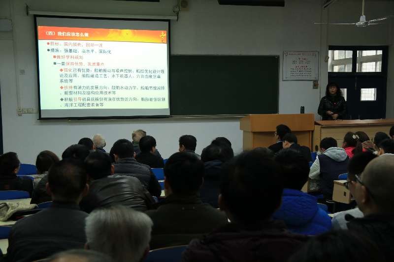12月7日下午,船海学院在东十二楼102教室举行学习贯彻党的十九大精神宣讲会。宣讲会由校学习贯彻党的十九大精神宣讲团成员、院党委书记萧莉同志主讲,学院党委理论中心组全体成员、全体在职教工、退休教职工代表、全体学生党支部委员和部分学生干部参加了此次宣讲会。