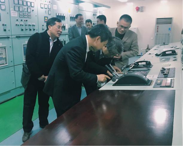 领导教师参观轮机机舱实验室
