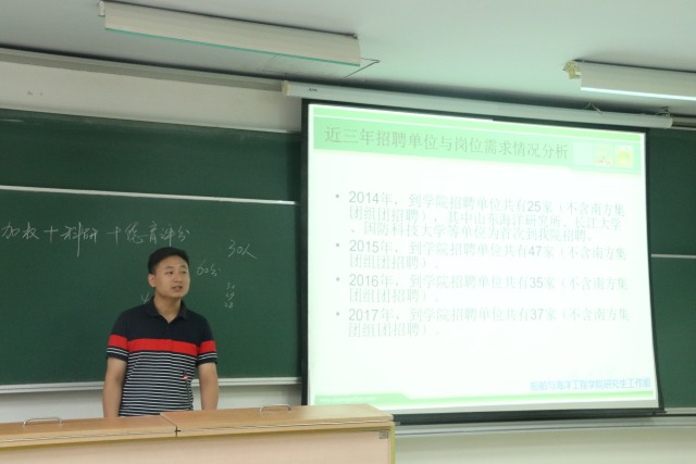 积极开展年级大会,学院研工部工作组就船海学院就业现状、研究生奖学金的分配及评选事宜及学院研究生会的情况进行了说明。新老学生交流会也帮助新生们更多的了解研究生的科研与生活。