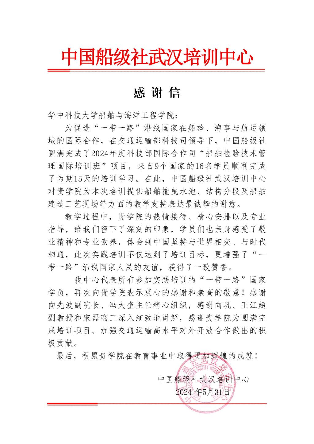 6月3日,漫岛动漫 收到来自中国船级社武汉培训中心的感谢信。