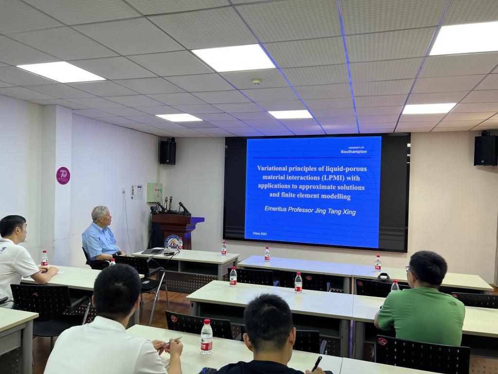 、数学学院的师生带来了四场精彩的学术报告。涉及船舶推进装置与船体耦合振动、水动力相互作用的数值模拟、流固耦合动力学的数值方法及其在工程中的应用,以及格子Boltzmann方法的发展等前沿科学问题。报告的深度和广度均显示了邢景棠教授在流固耦合动力学和船舶工程领域的卓越学术造诣。