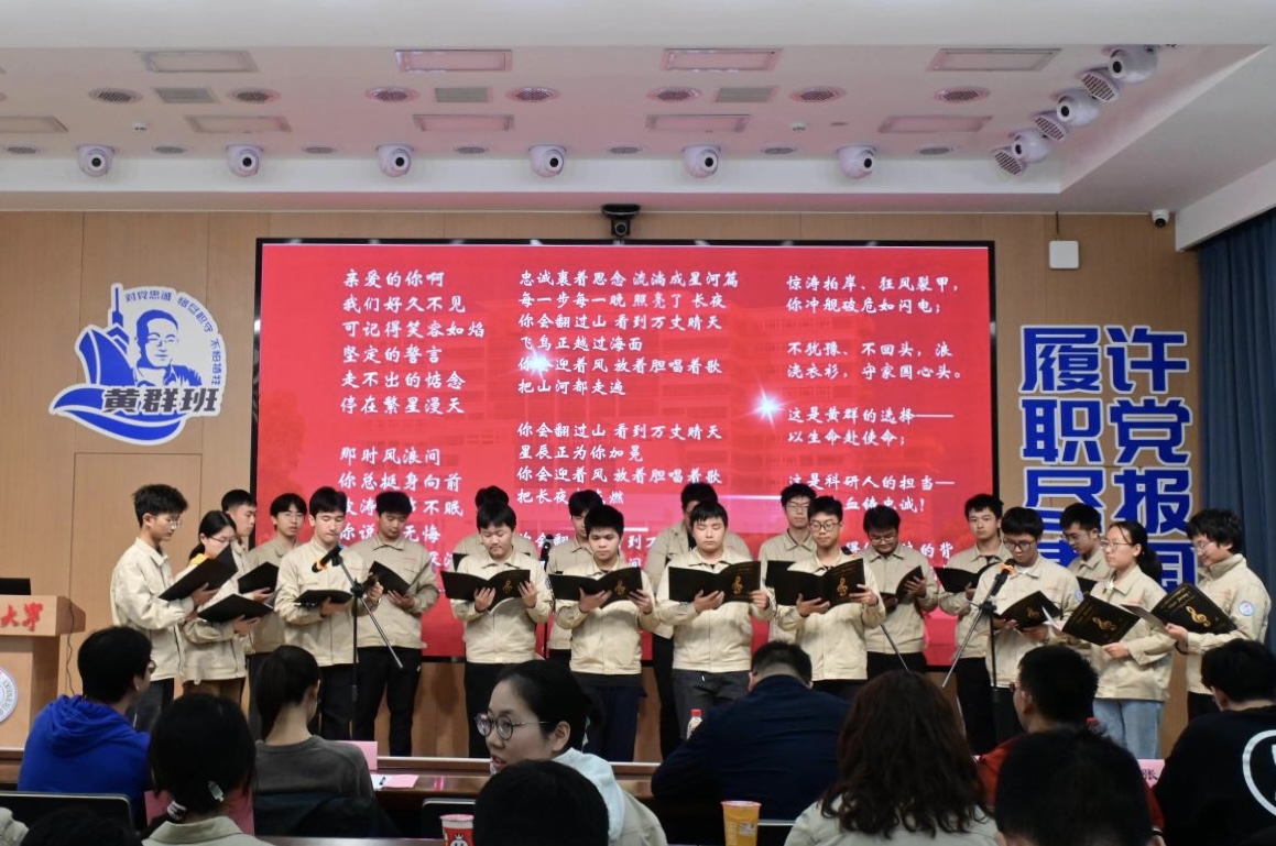 船创2401班的风采展示,生动描绘了集体成长的坚实底色。他们展现出严谨的班级制度,系统性地展示了诸如晚自习打卡、作业清点等行之有效的条规,这不仅是日常管理的框架,更是培育优良学风的有力手段。在此基础之上,班级内形成了勤学笃行、互帮互助的浓厚氛围,同学们在学习道路上结伴同行,共同进步。展示的尾声,班级全体同学共同登台,以一首深情而坚定的原创歌曲作为结尾。悠扬的旋律中,满载着对黄群学长的深切追思与崇高敬意,激昂的歌词里更唱响了新一代青年接续奋斗、矢志报国的远大理想。