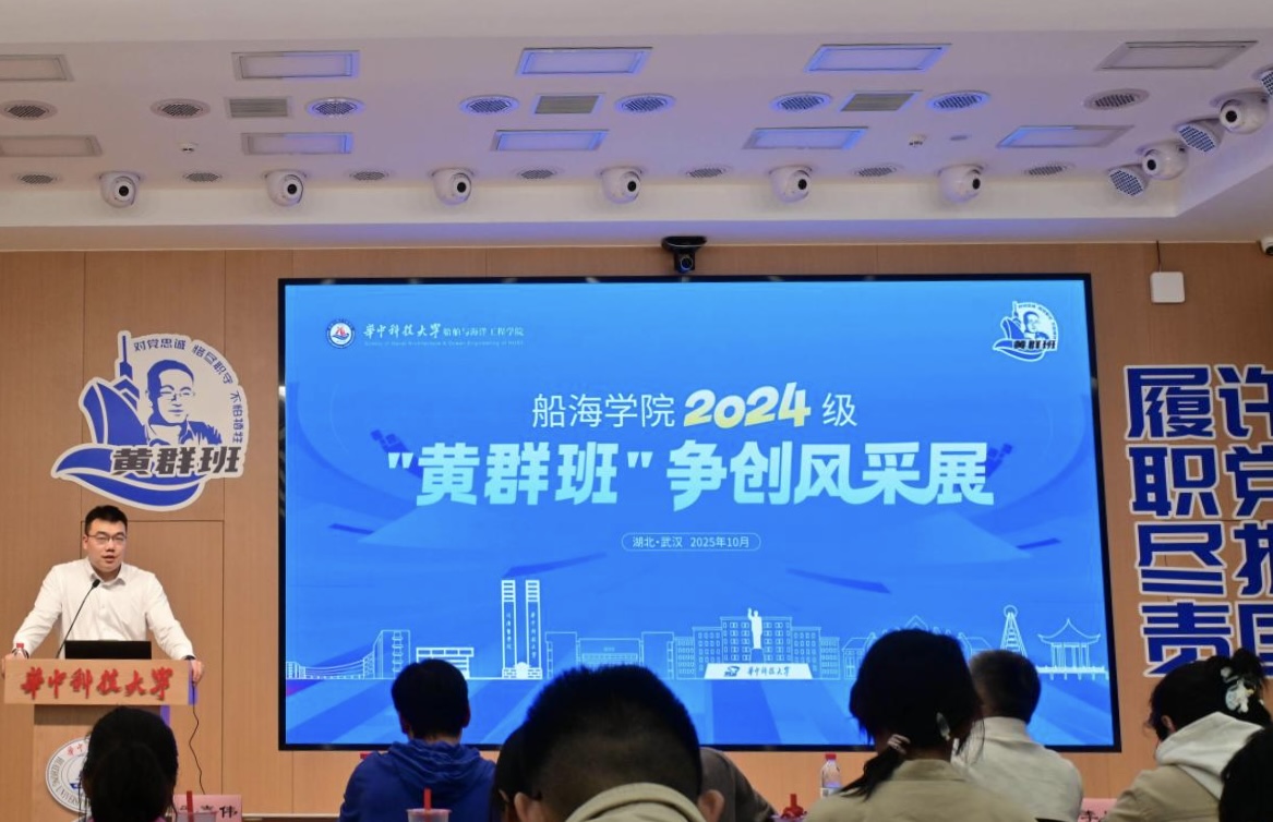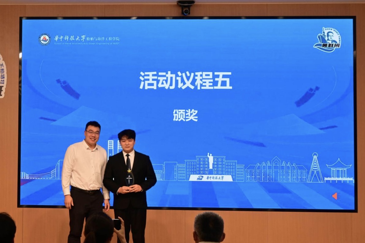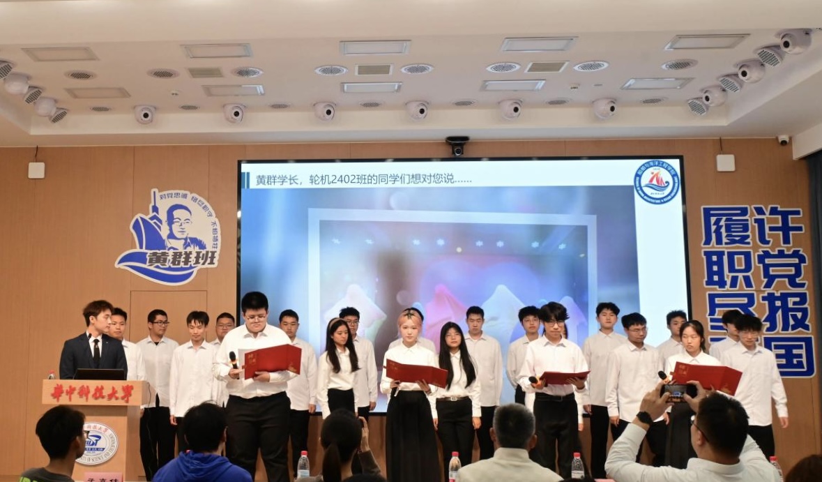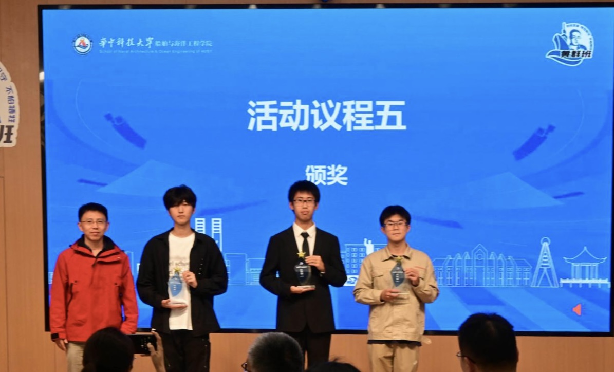 最后评委们结合班级日常表现、现场展示效果等多维度进行综合评定,确定获奖名单。轮机2401班凭借突出的综合表现荣获“黄群班”称号;轮机2402班、船创2401班以扎实的班级建设获评“传承班”;船海2401班、船海2402班、船海2403班因积极向上的班风获授“致敬班”称号。颁奖环节中,学院领导老师分别为获奖班级代表颁发奖杯,现场响起阵阵掌声。