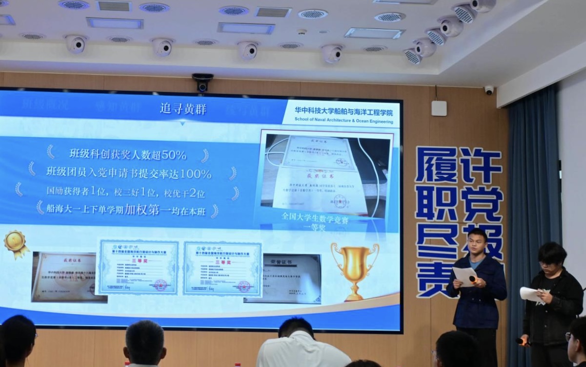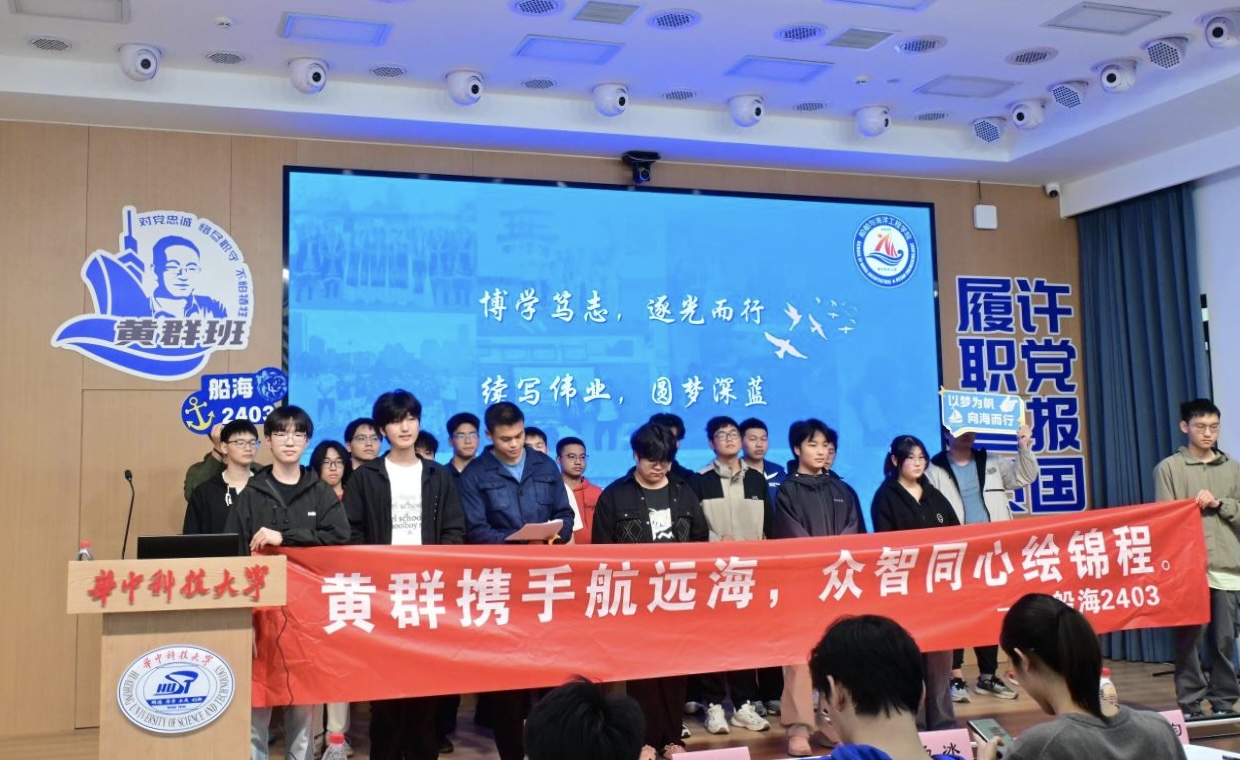 船海2403班的风采汇报中展示了班级始终以学习和实践等各个方面的建设目标展开——从学习帮扶小组的成立、志愿服务活动的定格瞬间、企业社会实践合影,到横幅上“黄群携手航远海,众智同心绘锦程”的醒目誓言、班级合唱的《夜空中最亮的星》中的“请指引我 靠近你”,每一处细节都在诉说着同学们在学习与实践中的扎实足迹,每一次努力都成了船海2403班同学们逐梦路上最生动的注脚。