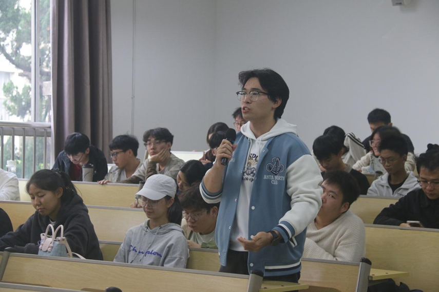 在互动交流环节,气氛热烈活跃。在场师生围绕专业学习与行业发展的结合点积极提问,问题涵盖“游艇产业对复合型人才的能力需求”“新能源游艇技术研发的核心方向”“青年创业如何把握行业政策红利”“船海专业学生在游艇设计与制造中的职业切入点”“创业初期如何平衡技术理想与市场需求”“打破欧美游艇产业偏见的关键路径”“高压创业场景下的心态调节方法”等多个方面。冷学华校友结合自身两次创业的实践经验与深耕行业多年的行业洞察,逐一回应师生关切:
