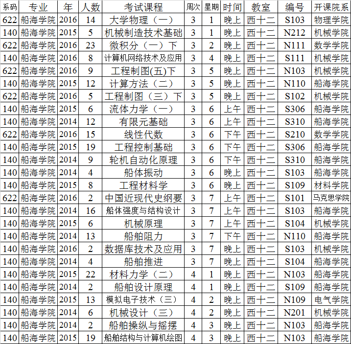 注意:系码是622的主考教师由教务处通知,其他课程的主考教师由学生所在院系通知