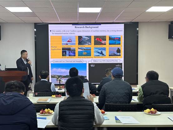向巩副教授和刘炎副教授主持。来自香港理工大学博士后毕晓波、香港科技大学博士后瞿洋、香港大学博士后邱凯旋博士后以及中船712所室主任花仕洋分别就环境流体能量采集、无人船自主导航与控制、智慧能源、氢燃料电池技术的研究与应用作了精彩的报告。报告后的提问环节中,在场师生和学者们展开了热烈交流与学术研讨。