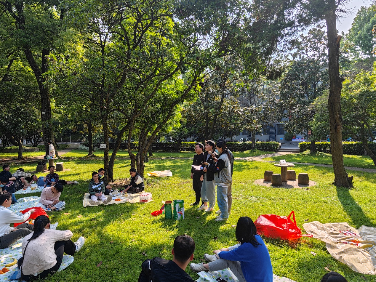 完成整理后,同学们紧接着在学院门前的草地上开展党建沙龙活动,针对学院在党建方面存在的一些问题展开小组讨论,例如党员发展过程有哪些不足、党建与科研如何相互促进、党支部建设如何形成特色等等。大家积极发表想法并出谋划策,体现出新时代青年的责任意识与主人翁意识。小组讨论环节结束后,各组轮流进行了成果展示和分享,将小组的智慧在组间进行传递。