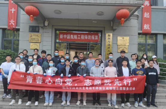 于2023年4月26日组织开展了“青春心向党,志愿我先行”为主题的电动车停放区域整理志愿服务活动,船海专业研究生第三党支部和轮机专业研究生第二党支部共30余人参与。
