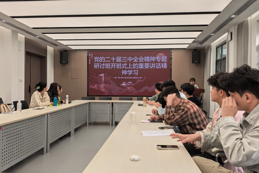 11月15日,2022级本科生党支部开展11月主题党日暨支部大讨论。李晓勖同志领学了《习近平总书记在省部级主要领导干部学习贯彻党的二十届三中全会精神专题研讨班开班式上的重要讲话》,陆常宏同志领学了《习近平总书记给中国国际大学生创新大赛参赛学生代表的重要回信》,随后参会党员针对两讲微党课以及第三期领航大讲堂的学习情况积极发表看法和感悟。