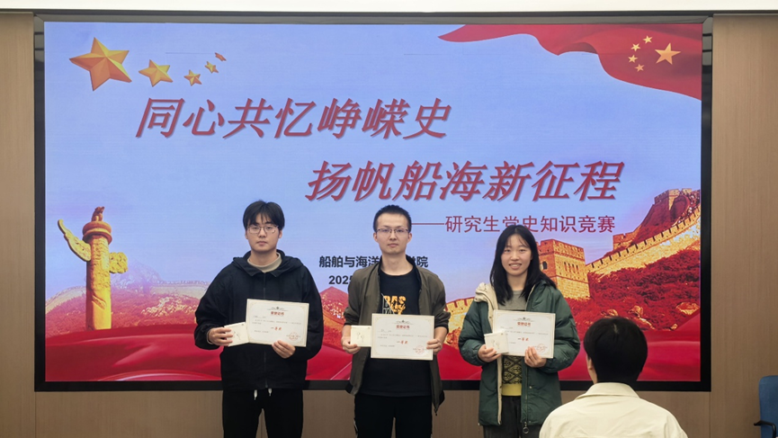 最后,工作人员统计了各小组答题总分,经过层层比拼,最终船海专业硕士生第二党支部获得了一等奖,船海专业硕士生第一党支部获得了二等奖,轮机专业硕士生第二党支部获得了三等奖。