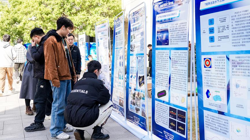 展出研究所以丰富的内容、新颖的呈现形式引得前来参观的同学们驻足学习,发放课题组宣传页,邀请同学们现场体验科研作品,一起探讨控制原理……各展区研究生们细致讲述着船舶知识,创意游戏区前欢声笑语,久久洋溢在院内广场。