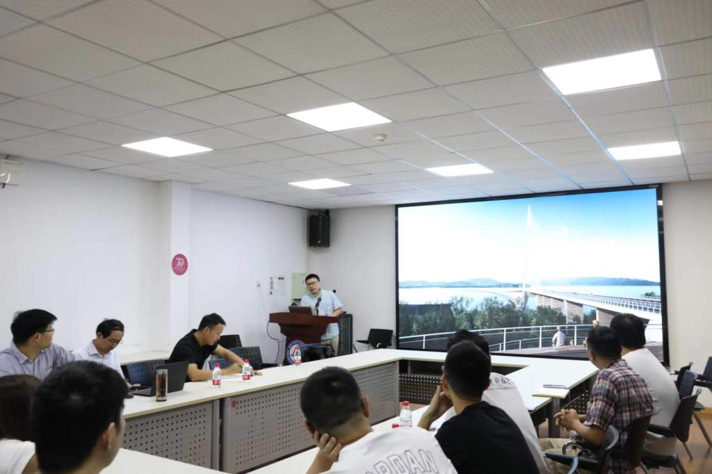 在报告会上,向旭博士介绍了在过去的数年间为设计和建造超过5000米的世界上最长浮桥Bjørnafjord floating bridge所做的工作。向旭博士重点讲解了浮桥的水动力和水弹性模型实验,展示了实验从设计、执行到实现和应用的全过程。浮桥模型包括浮筒桥部分和斜拉桥部分,全长超过52米,整个设计和实验均是世界首创。